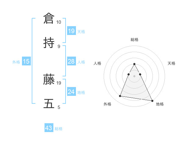 倉持 藤五さんを姓名の画数から五運を鑑定