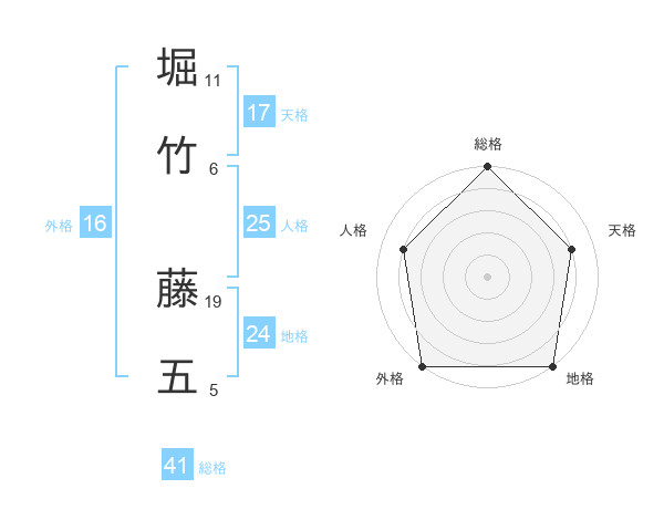 堀竹 藤五さんの総格は41画の5点!