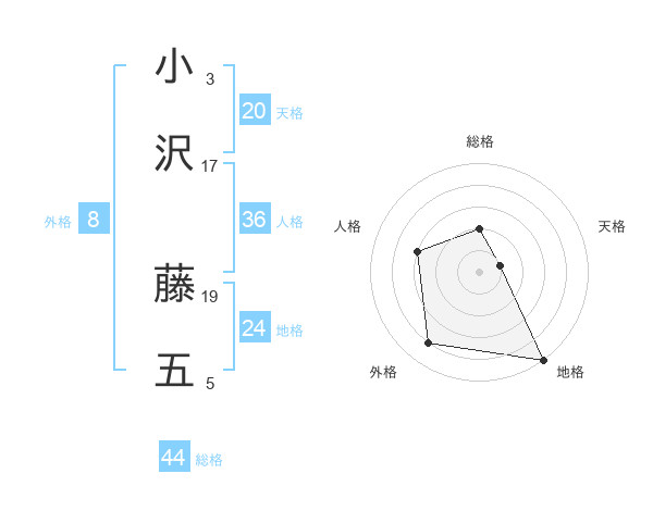小沢 藤五さんの総格は44画の2点!
