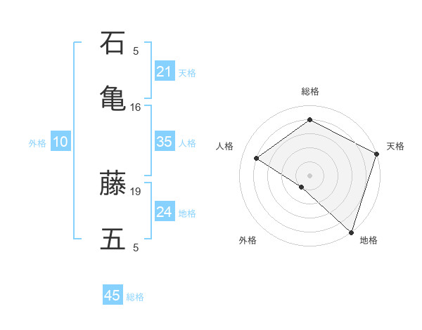 石亀 藤五さんの総格は45画の4点!