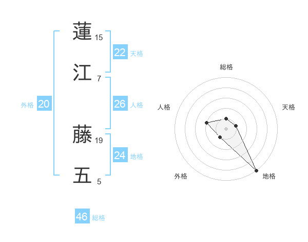 蓮江 藤五さんの地格は24画の5点!