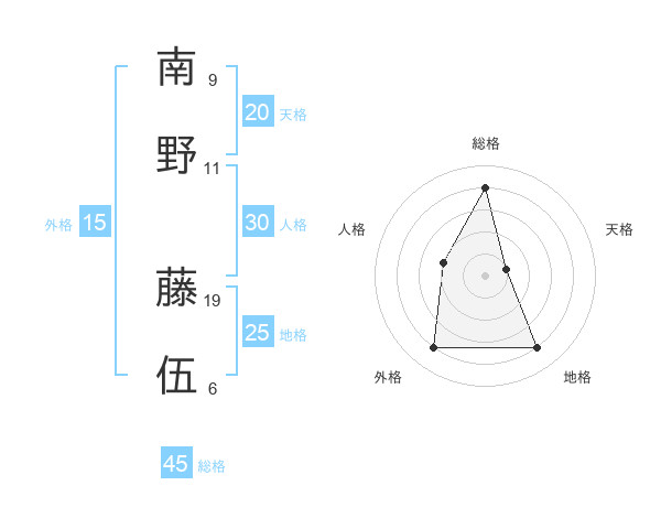 南野 藤伍さんを姓名の画数から五運を鑑定