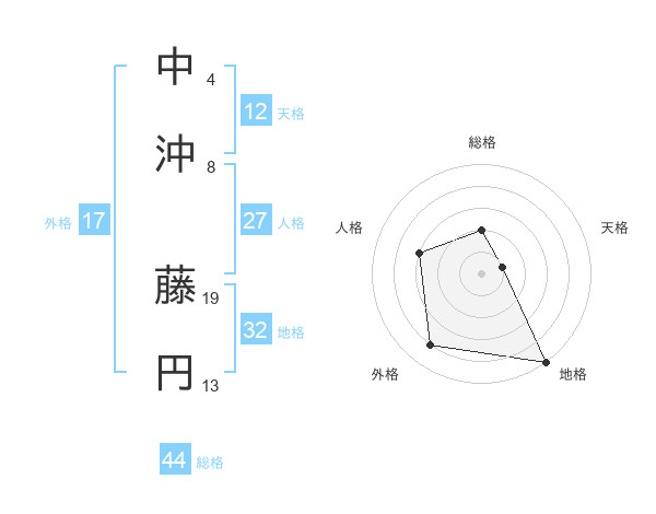 中沖 藤円さんを姓名の画数から五運を鑑定
