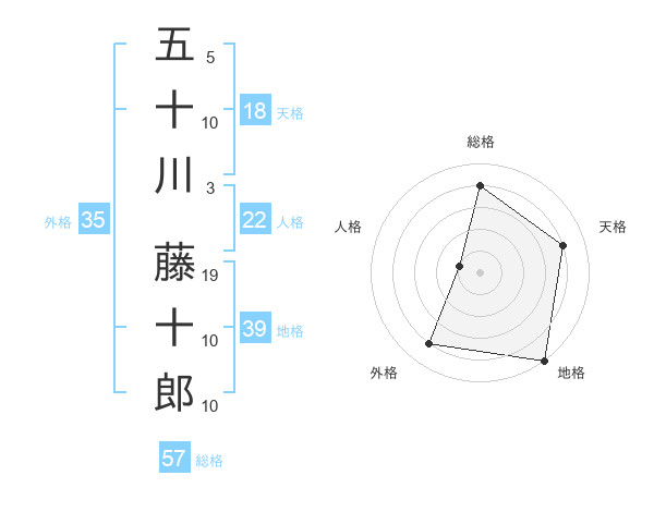 五十川 藤十郎さんを姓名の画数から五運を鑑定