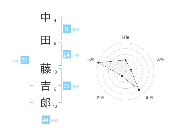 中田 藤吉郎さんを姓名の画数から五運を鑑定