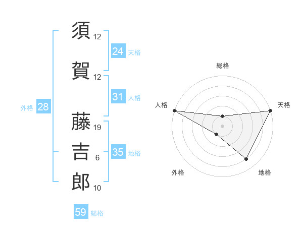 須賀 藤吉郎さんを姓名の画数から五運を鑑定