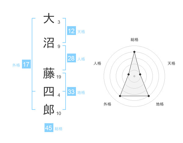 大沼 藤四郎さんを姓名の画数から五運を鑑定