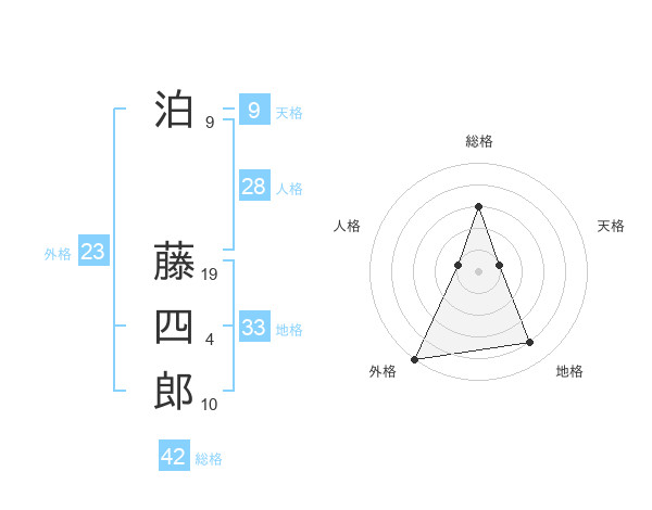泊 藤四郎さんの総格は42画の3点