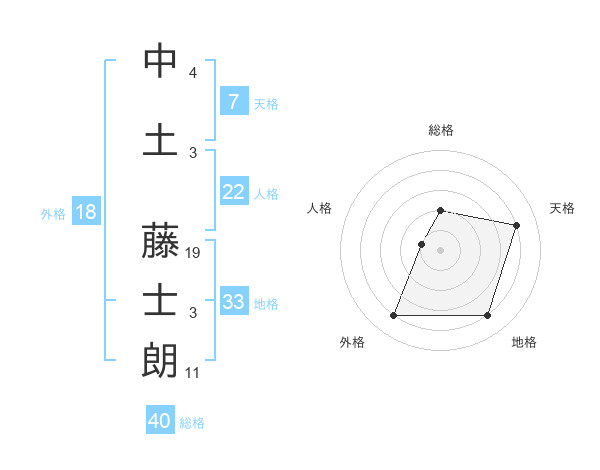 中土 藤士朗さんの地格は33画の4点!