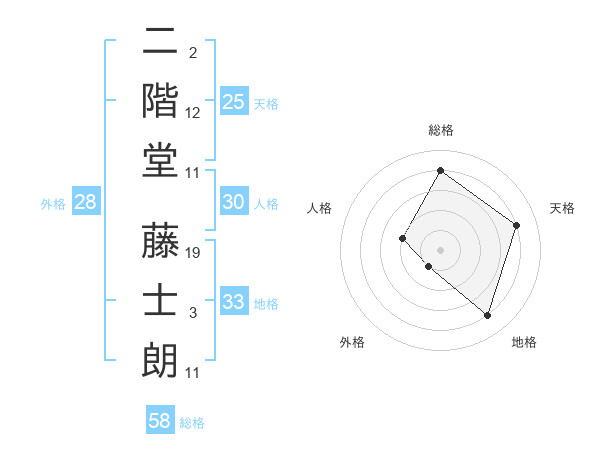 二階堂 藤士朗さんの総格は58画の4点!