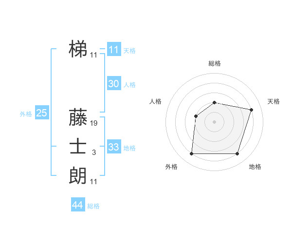 梯 藤士朗さんを姓名の画数から五運を鑑定
