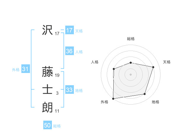 沢 藤士朗さんを姓名の画数から五運を鑑定