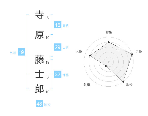 寺原 藤士郎さんの総格は48画の4点!