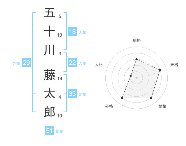 五十川 藤太郎さんを姓名の画数から五運を鑑定