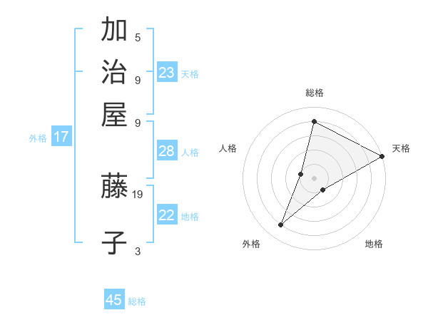 加治屋 藤子さんを姓名の画数から五運を鑑定