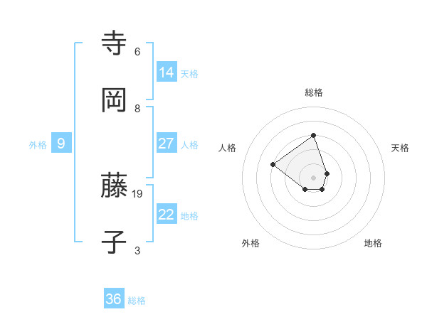 寺岡 藤子さんの総格は36画の3点!