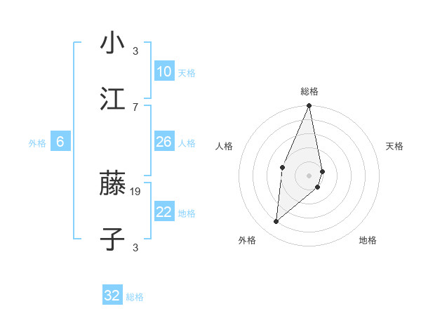 小江 藤子さんの総格は32画の5点!