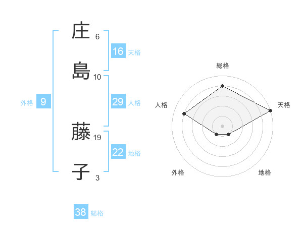 庄島 藤子さんの天格は16画の5点!