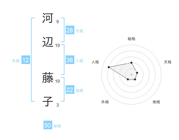 河辺 藤子さんを姓名の画数から五運を鑑定