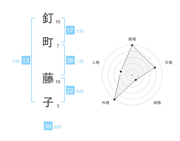 釘町 藤子さんの総格は39画の5点!