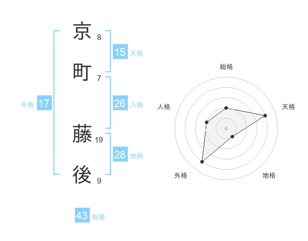 京町 藤後さんの天格は15画の4点!