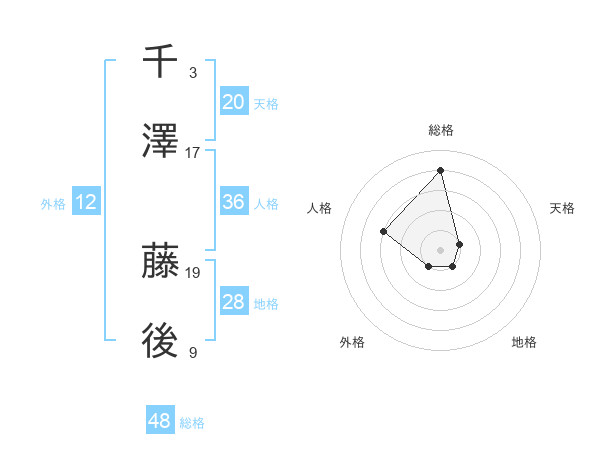 千澤 藤後さんの総格は48画の4点!