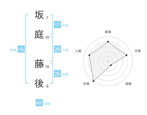 坂庭 藤後さんの総格は45画の4点!