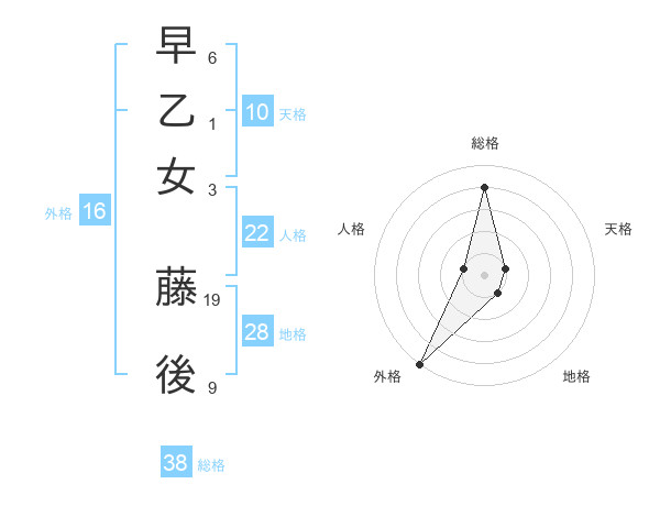 早乙女 藤後さんを姓名の画数から五運を鑑定