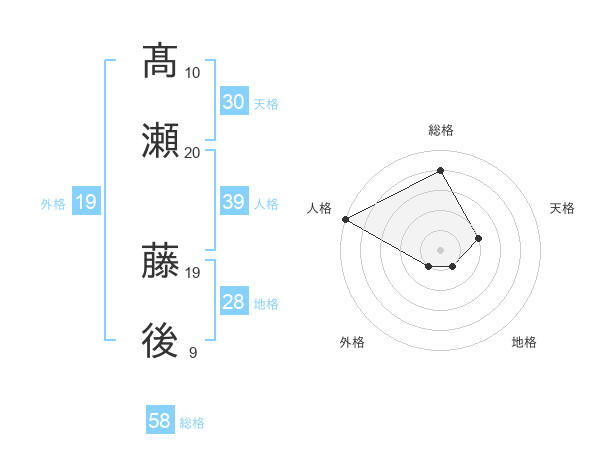 髙瀬 藤後さんの総格は58画の4点!