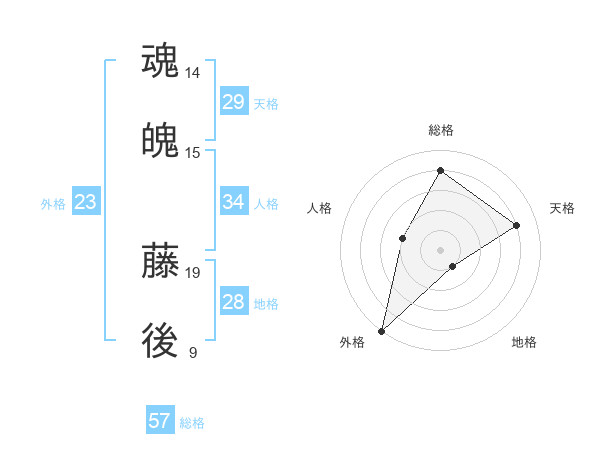 魂魄 藤後さんを姓名の画数から五運を鑑定