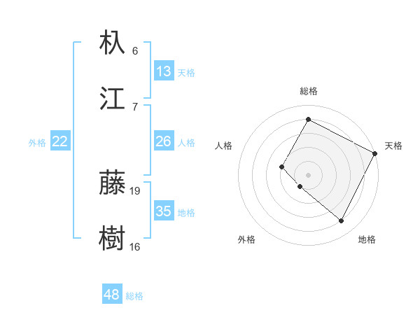 杁江 藤樹さんの総格は48画の4点!