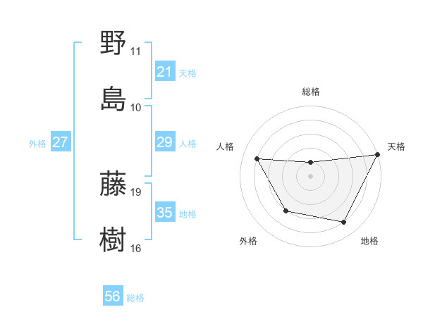 野島 藤樹さんの総格は56画の1点
