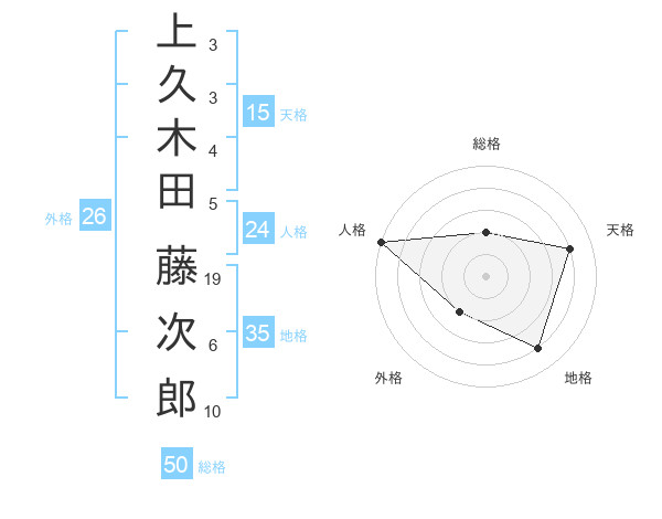 上久木田 藤次郎さんの総格は50画の2点!