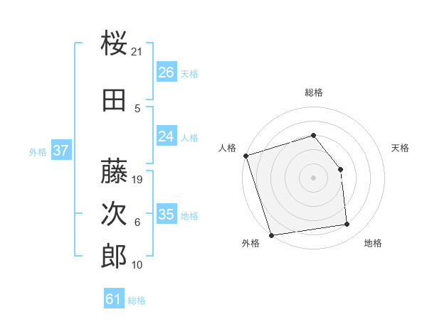 桜田 藤次郎さんを姓名の画数から五運を鑑定
