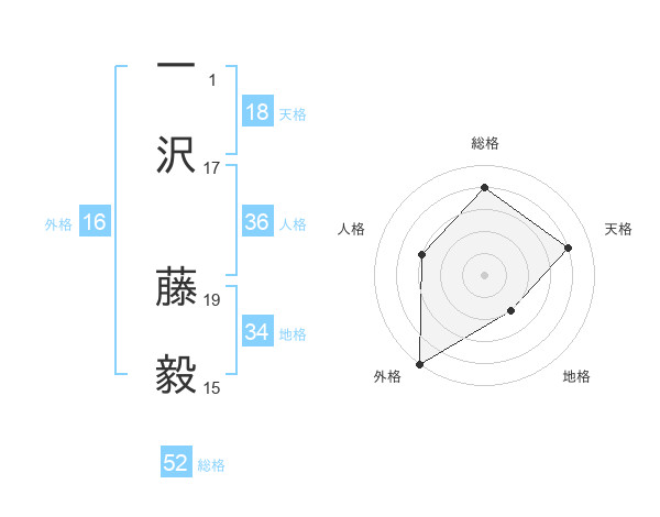 一沢 藤毅さんを姓名の画数から五運を鑑定