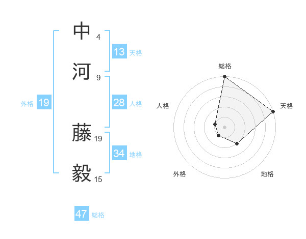 中河 藤毅さんの総格は47画の5点!
