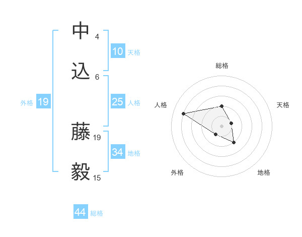 中込 藤毅さんを姓名の画数から五運を鑑定