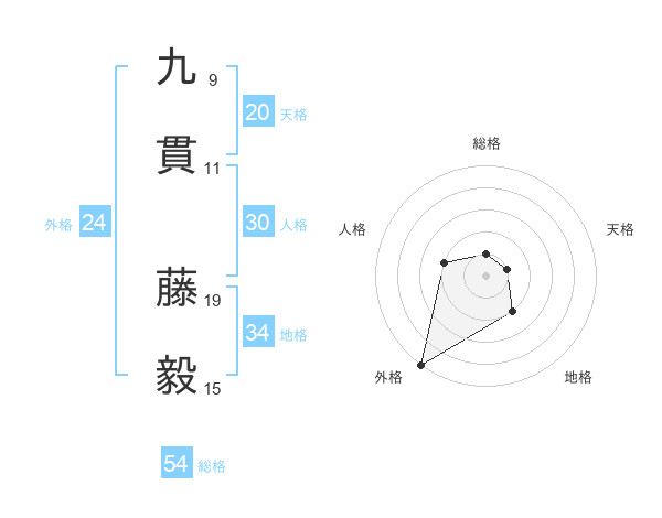 九貫 藤毅さんを姓名の画数から五運を鑑定
