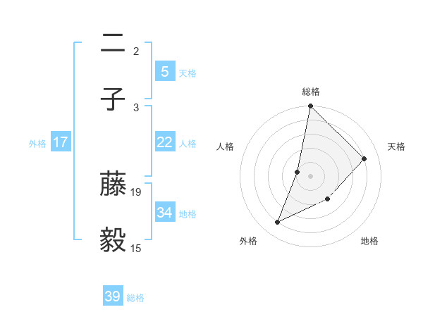 二子 藤毅さんの総格は39画の5点!