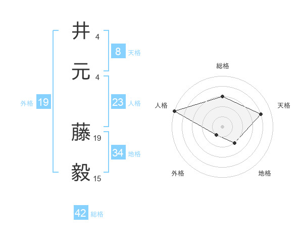 井元 藤毅さんの総格は42画の3点!
