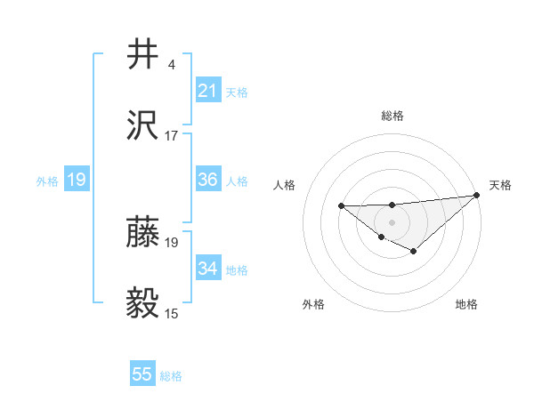 井沢 藤毅さんを姓名の画数から五運を鑑定