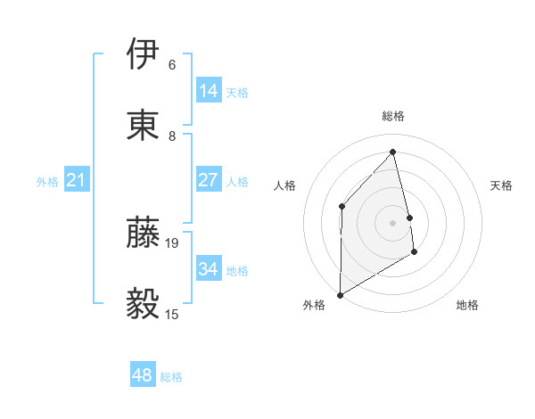 伊東 藤毅さんを姓名の画数から五運を鑑定