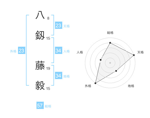 八釼 藤毅さんを姓名の画数から五運を鑑定