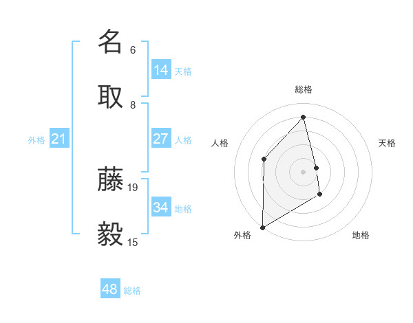 名取 藤毅さんの総格は48画の4点!