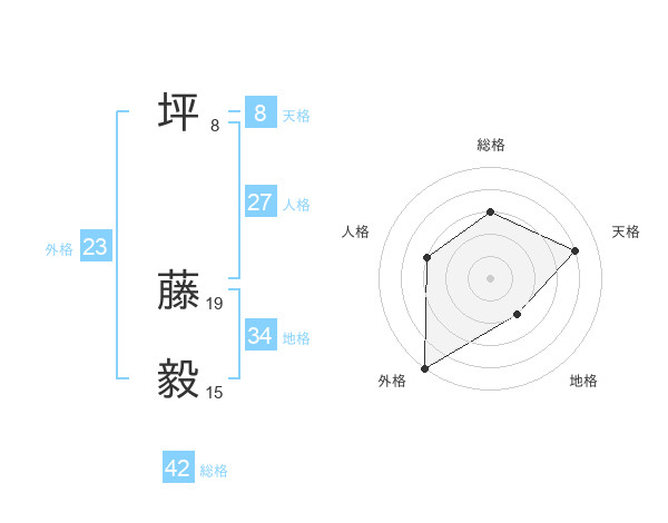 坪 藤毅さんを姓名の画数から五運を鑑定