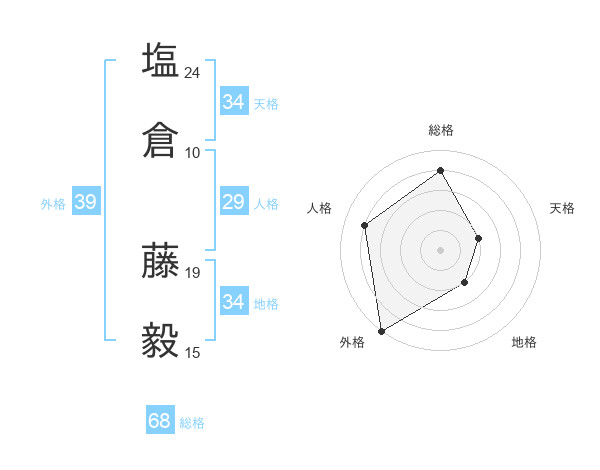 塩倉 藤毅さんの総格は68画の4点!