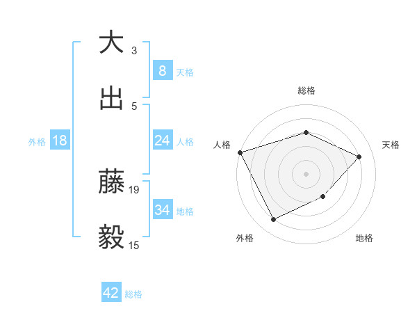 大出 藤毅さんを姓名の画数から五運を鑑定