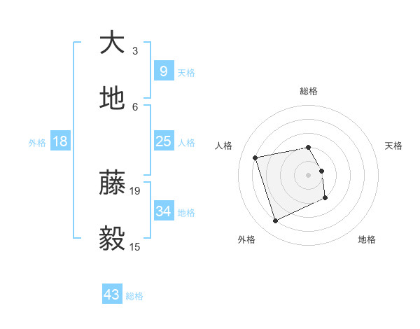大地 藤毅さんの総格は43画の2点!