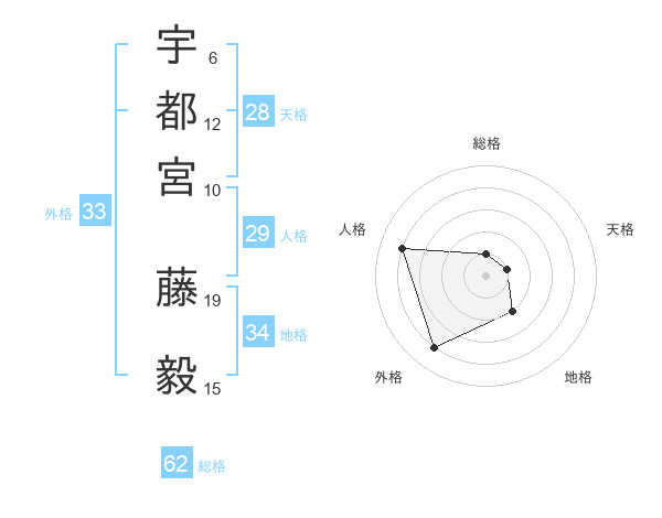 宇都宮 藤毅さんの総格は62画の1点!