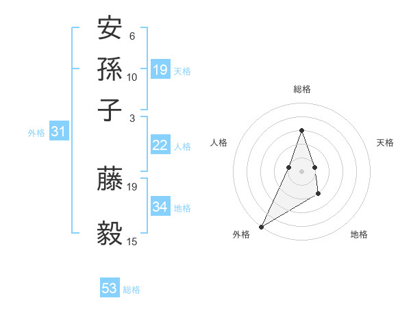安孫子 藤毅さんの総格は53画の3点!